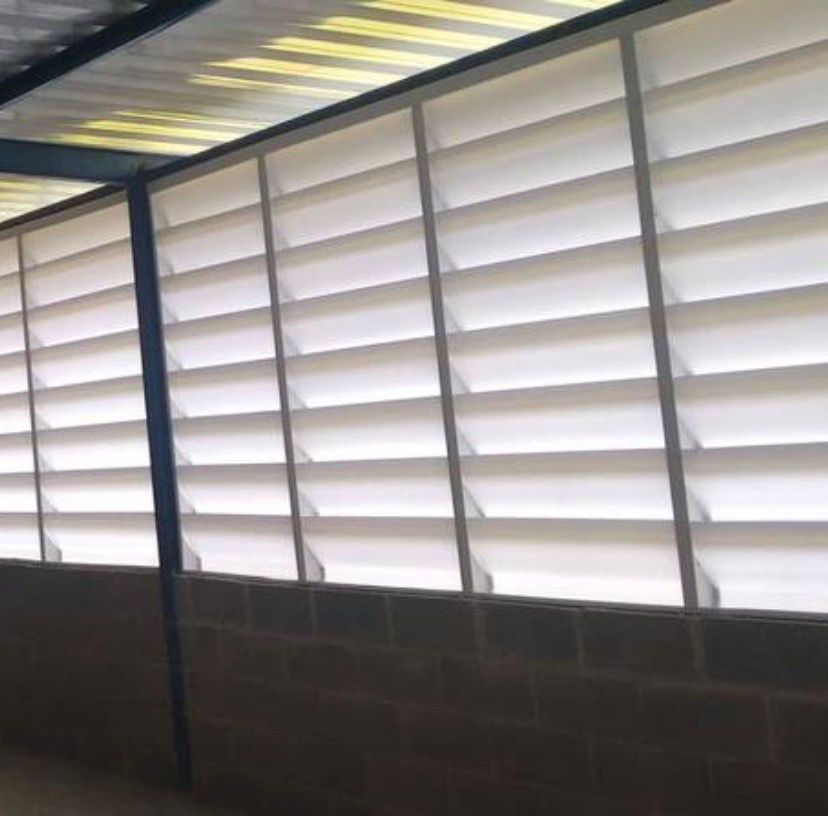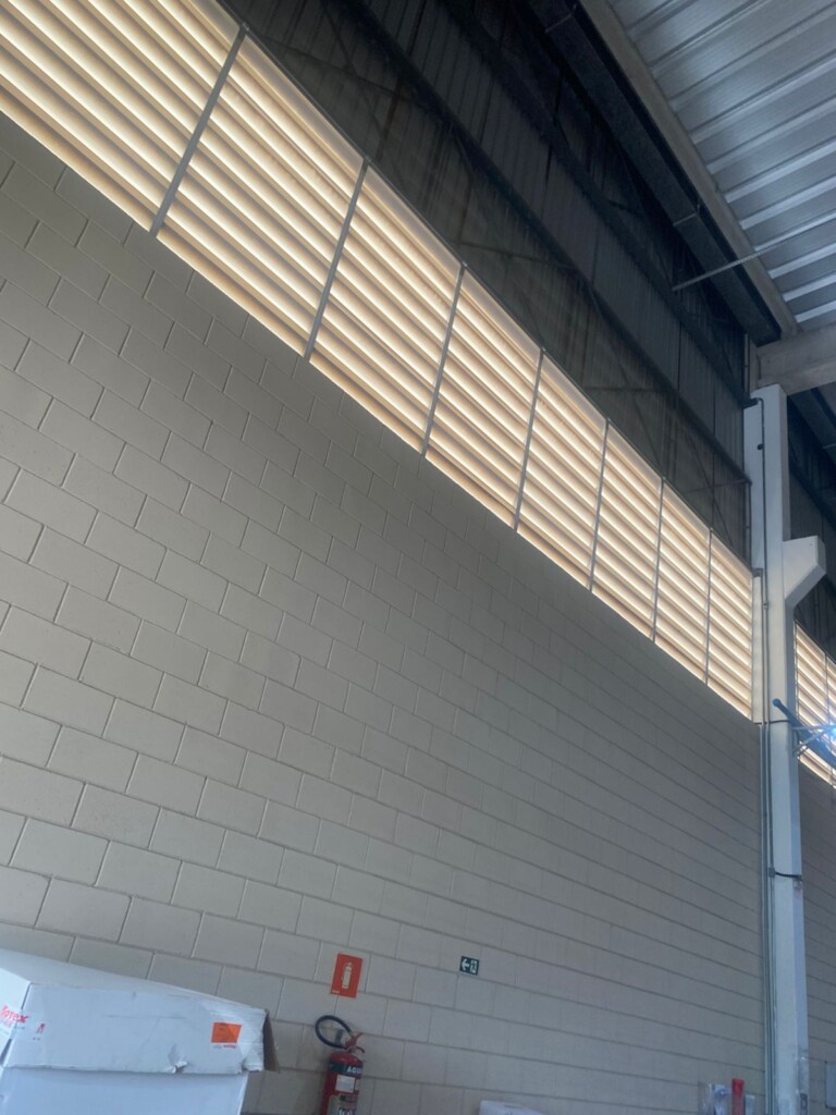 Nossa solução: Instalamos venezianas industriais que garantem renovação constante do ar, melhorando drasticamente o conforto térmico e a saúde de todos que trabalham no local.