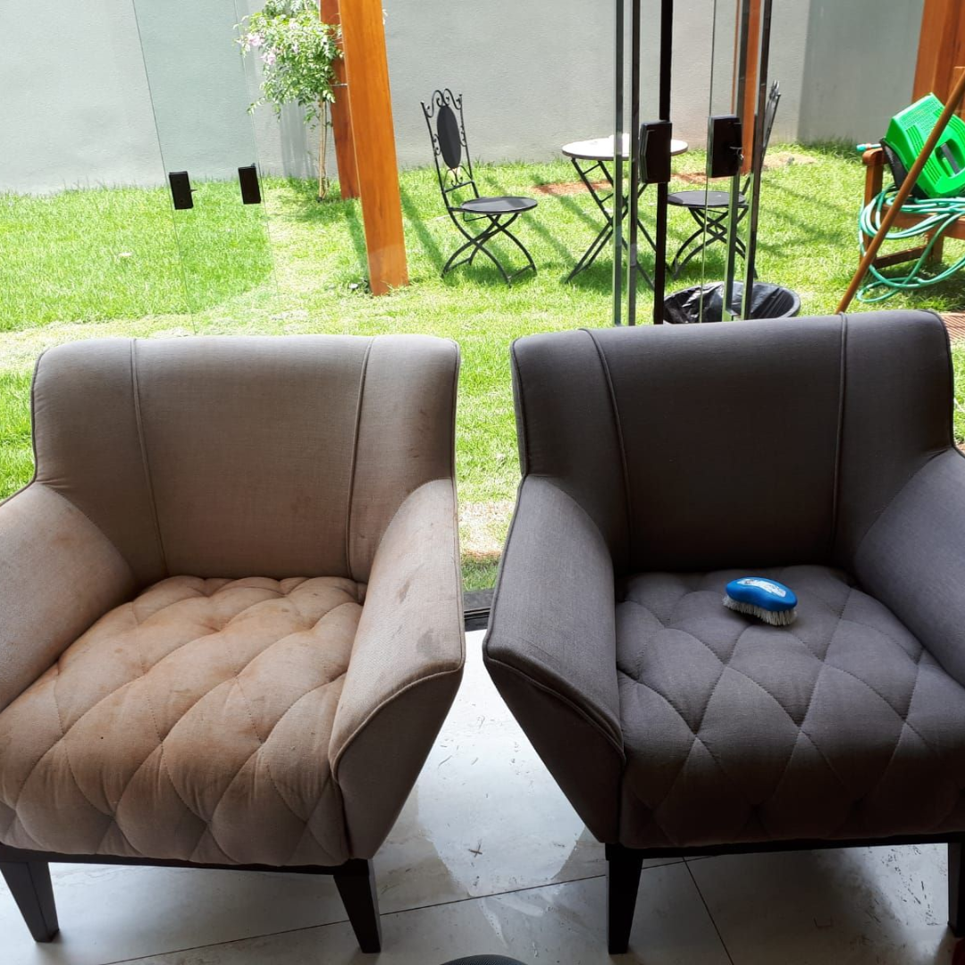 Limpeza de sofás, poltronas e cadeiras, eliminando odores e bactérias.